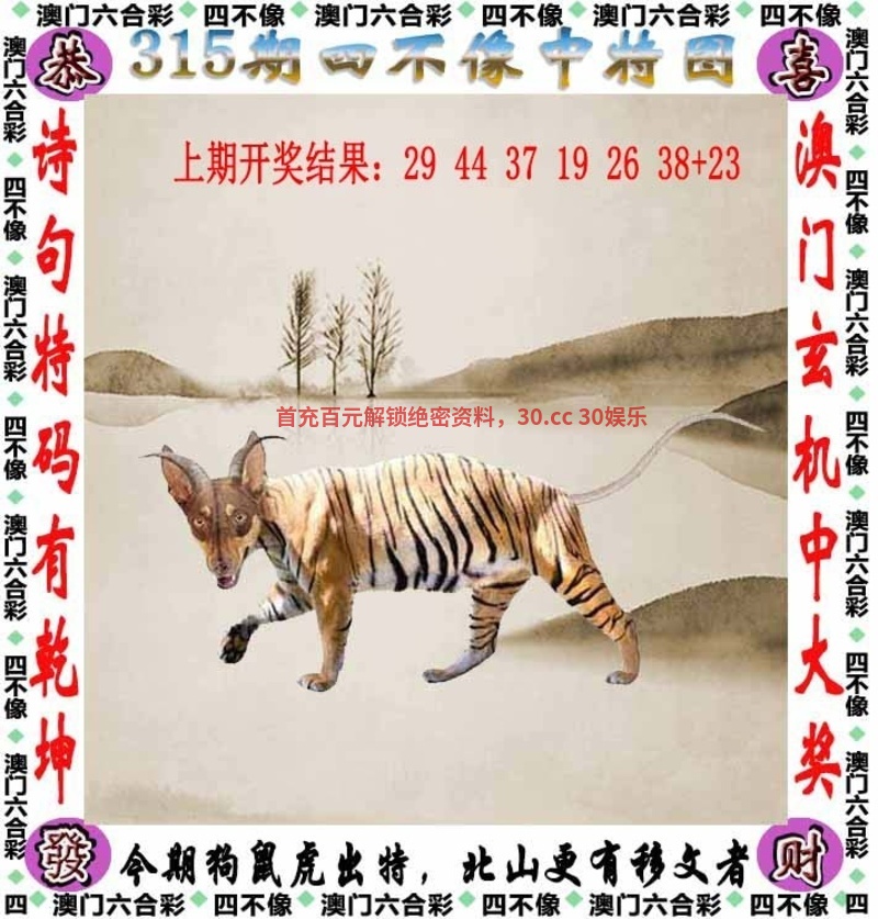 | 315期:单『牛鸡蛇羊』双『狗猴龙虎』开虎04准 | |||
